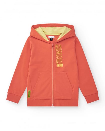 Oranž poiste kootud T-särk tumehallide pikkade varrukatega