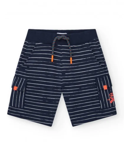 Poiste tumesinine bermuda püksid valge triibulise mustriga
