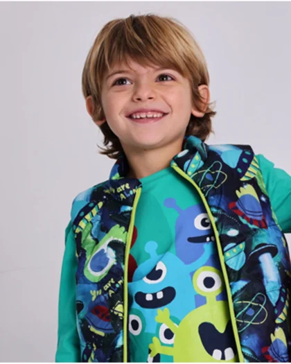 Poiste kahepoolne tepitud vest kosmose trükiga
