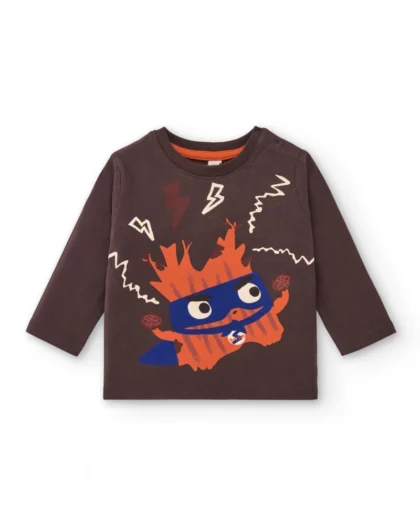 Pikkade varrukatega pruun T-särk poistele