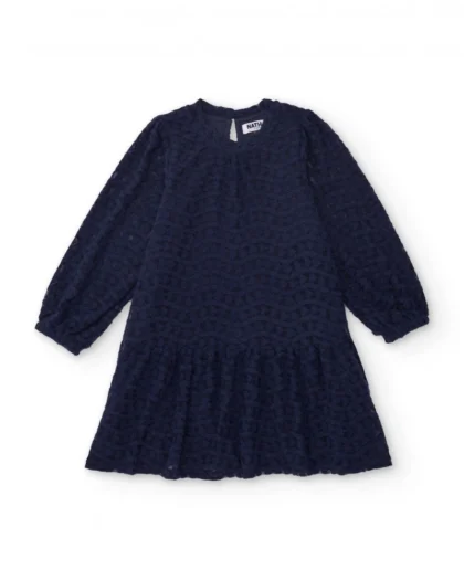 Tumesinine pitskangast voodriga tüdrukute kleit