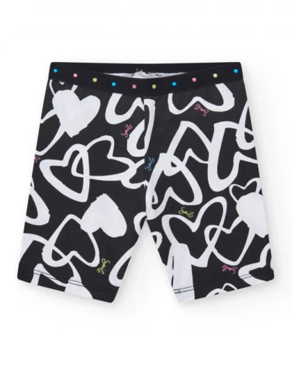 Mustad tüdrukute jalgrattasääred valgete südameprintidega