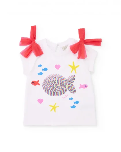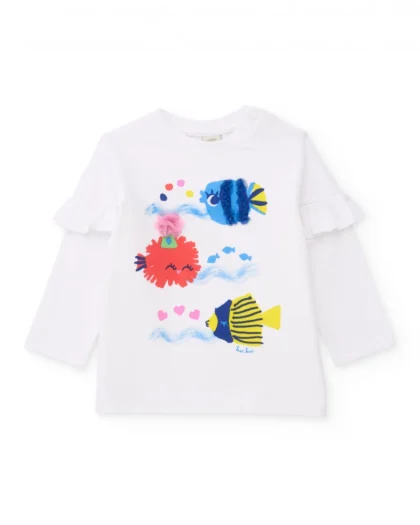 Valge tüdrukute pluus pikkade varrukatega ja elastsete kätistega