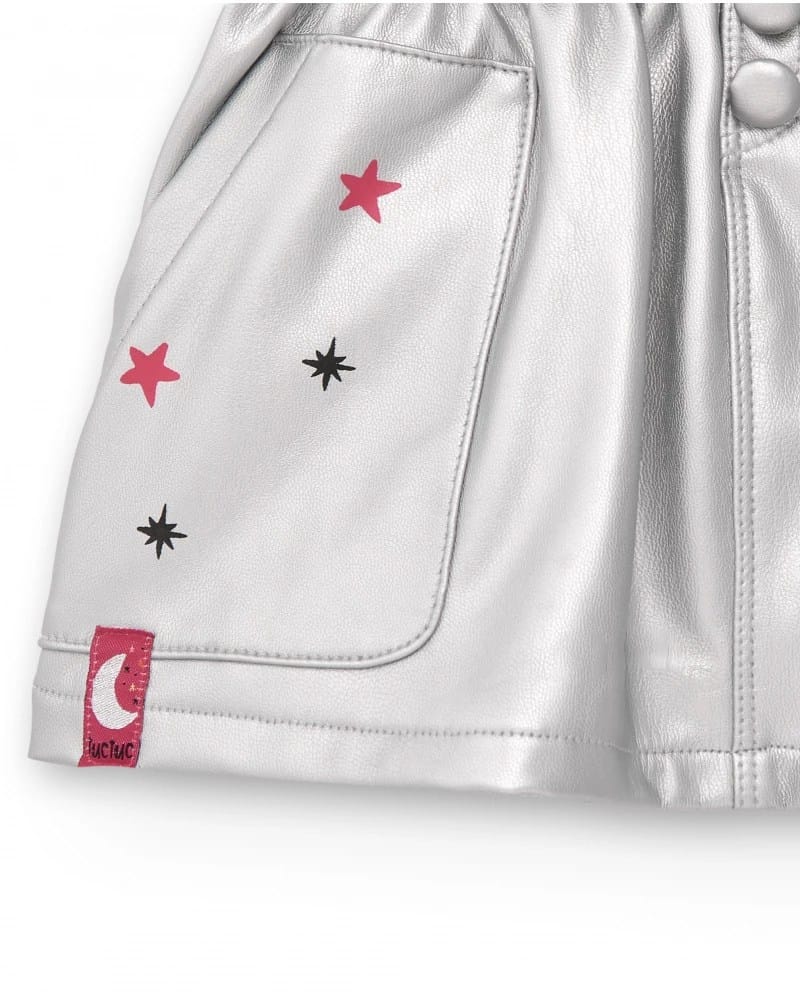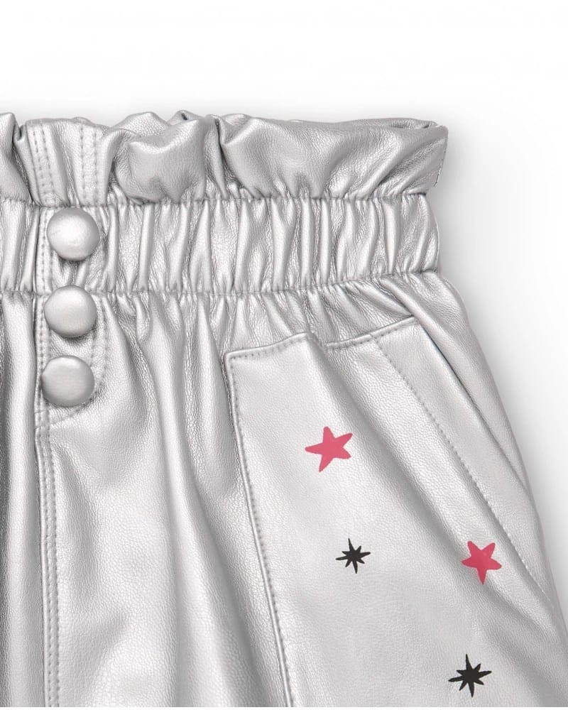 Särava viimistlusega ja lõbusa roosa ja musta tähetrükiga hõbeseelik tüdrukutele. Sellel on elastne vöörihm, mille ees on dekoratiivsed nööbid, mis tagavad mugava ja turvalise istuvuse. Ideaalne igale riietusele moodsa ja šiki lihvi lisamiseks.