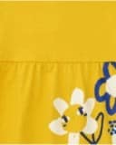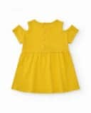 Kollane kleit tüdrukutele. Disainitud õlgadeta varrukate ja A-kujulise lõikega.