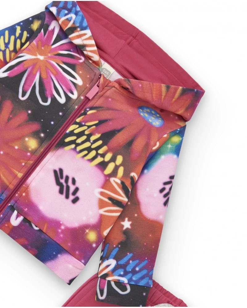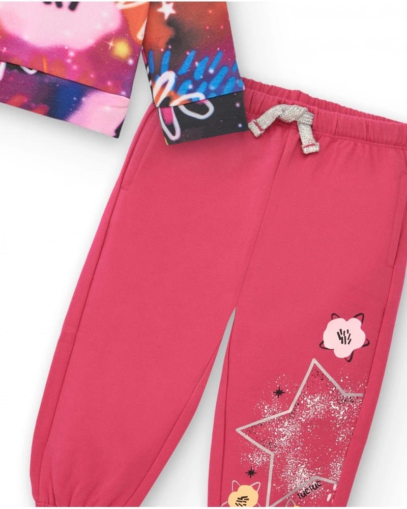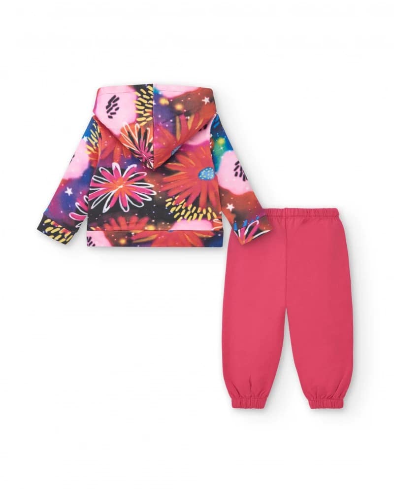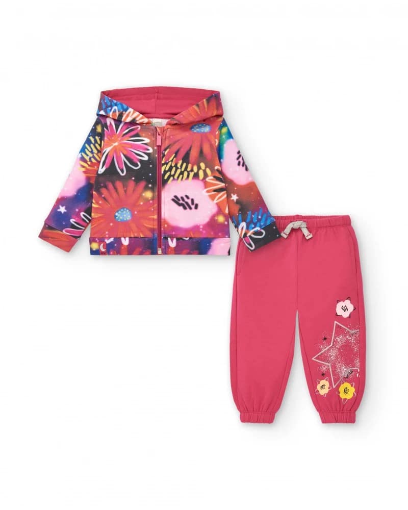 Dresipluusi ja pükside komplekt tüdrukutele, mis koosneb erksa lillelise mustriga fuksia värvi dressipluusi ja roosa püksest. See pehmest ja soojast kangast valmistatud komplekt sobib ideaalselt teie väikese tüdruku mugavaks ja stiilseks hoidmiseks jahedatel päevadel, lisades tema igapäevasele välimusele rõõmu ja lõbusust.
