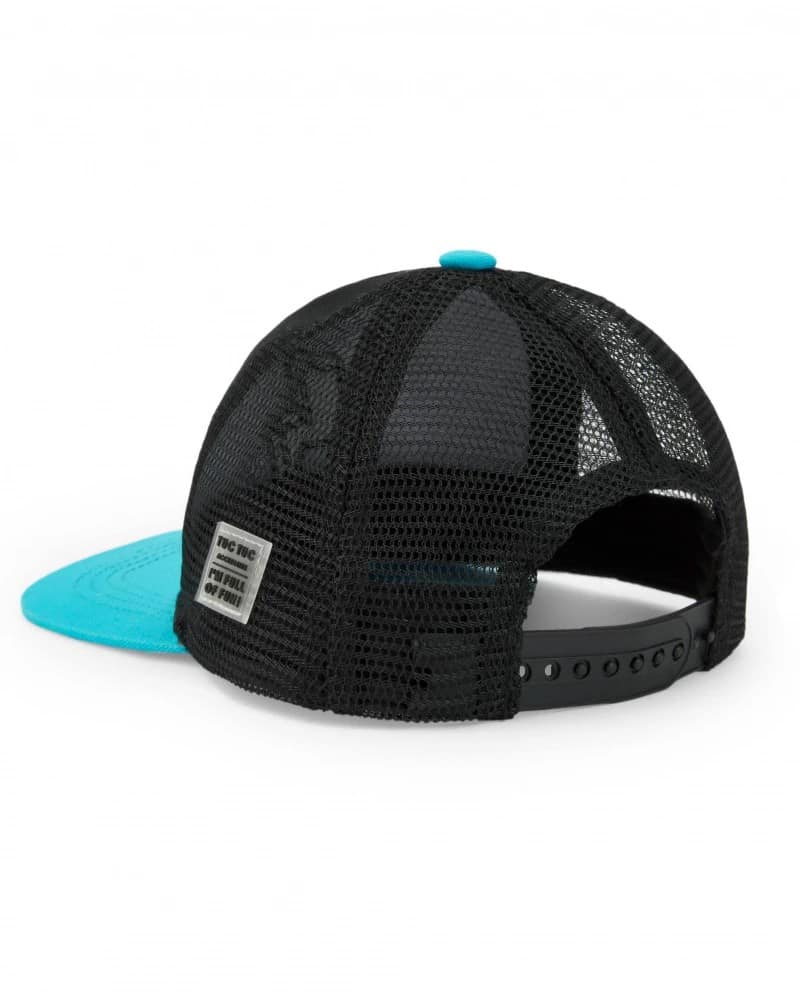 Musta värvi poiste nokamüts siniste ja kollaste detailidega, ees välgumustriga. Lameda ääre ja reguleeritava võrkkangaga seljal.