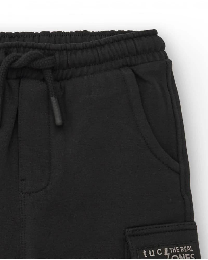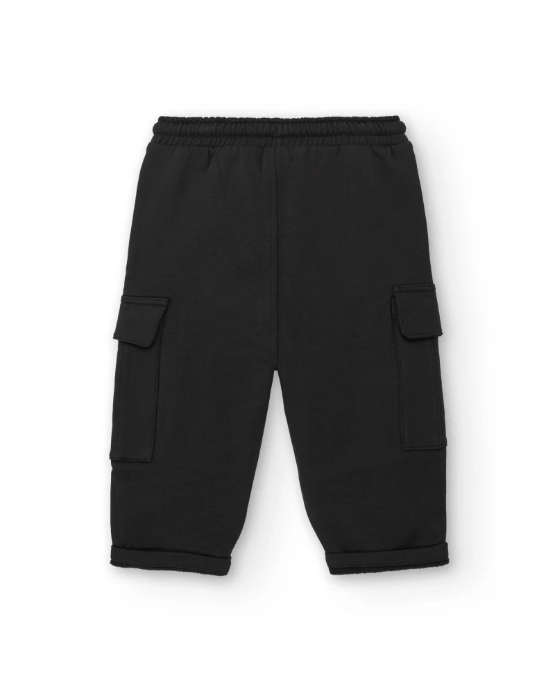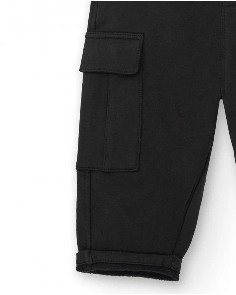 Mustad plüüsist püksid poistele, tasku disainiga ja elastse vöökohaga reguleeritava nööriga. Need püksid sobivad ideaalselt igapäevaelus mugavuse ja stiili pakkumiseks, pakkudes liikumisvabadust. Ideaalne kombineerida sama kollektsiooni t-särkide ja dressipluusidega.