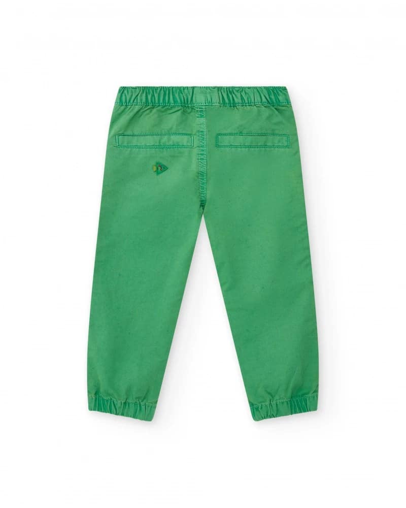 Rohelised lamedad püksid poistele elastse vöökohaga mugava istuvuse tagamiseks ja väikese tikandiga taskul. Mugav ja praktiline disain, ideaalne igapäevaseks kandmiseks.