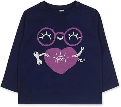 Pikkade varrukatega pehme T-särk tüdrukutele, mis on kaunistatud südametega. See pehmest puuvillast valmistatud T-särk sobib suurepäraselt väikeste tüdrukute garderoobi magususe ja modernsuse lisamiseks. Disain sisaldab nööpe õlal, mis hõlbustab riiete vahetamist.