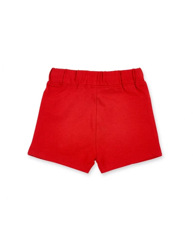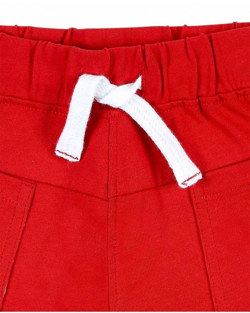Punased kootud bermuda püksid taskute, elastse vöökoha ja pingutusnööriga poistele. Ideaalsed mugava suvise riietuse jaoks.