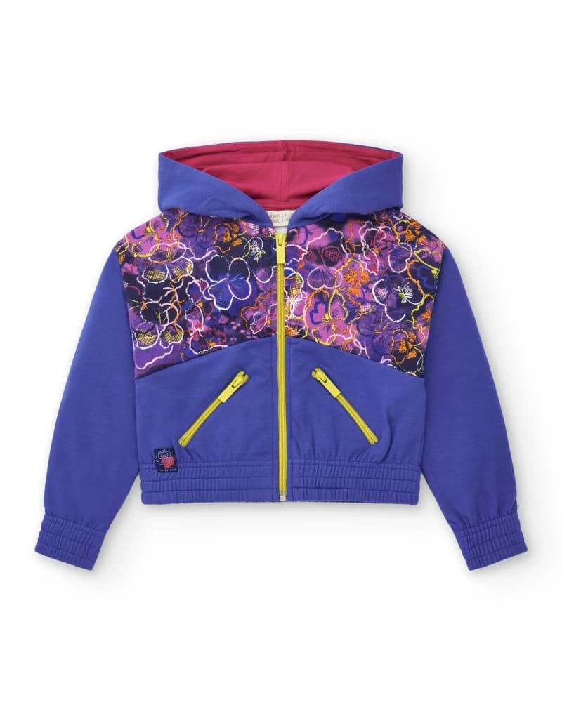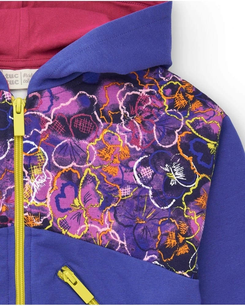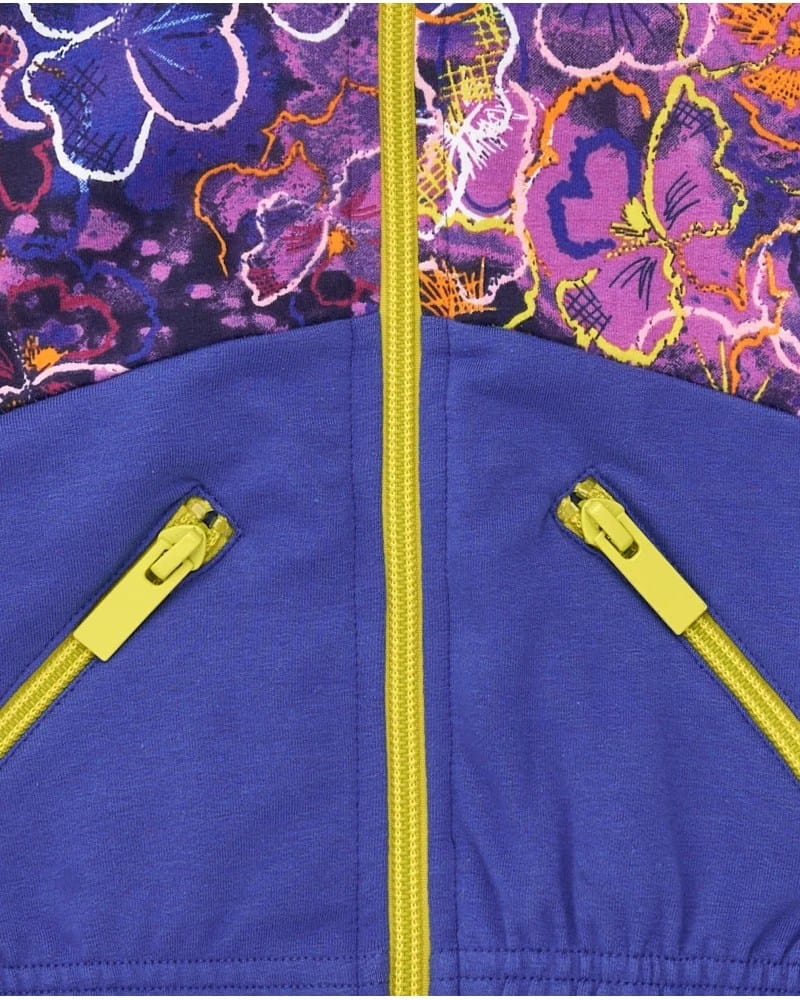 Soe jakk tüdrukutele. Erksa disainiga lilla jakk tüdrukutele, mis ühendab endas lillemustriga lillede, kollase ja oranži tooni rinna ülaosas, lisades värvi ja stiili. Sellel rõival on silmatorkava roosa tooniga kapuuts, mis sobib ideaalselt teie tüdruku soojaks hoidmiseks jahedatel päevadel. Jopel on kaks kollaste tõmblukuga esitaskut, mis mitte ainult ei anna funktsionaalset detaili, vaid on elegantselt kontrastiks lilla taustaga. Elastsed mansetid ja vöökoht tagavad mugava ja kindla istuvuse.