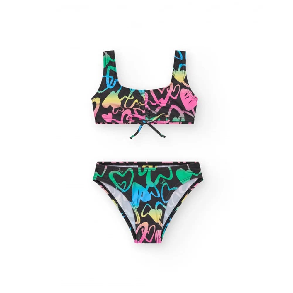 Tüdrukute bikiinid mitmevärvilise prindiga. Alumised osad on mugava lõikega.