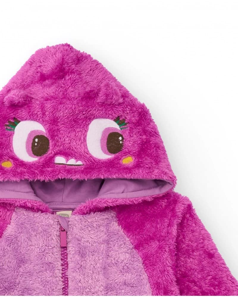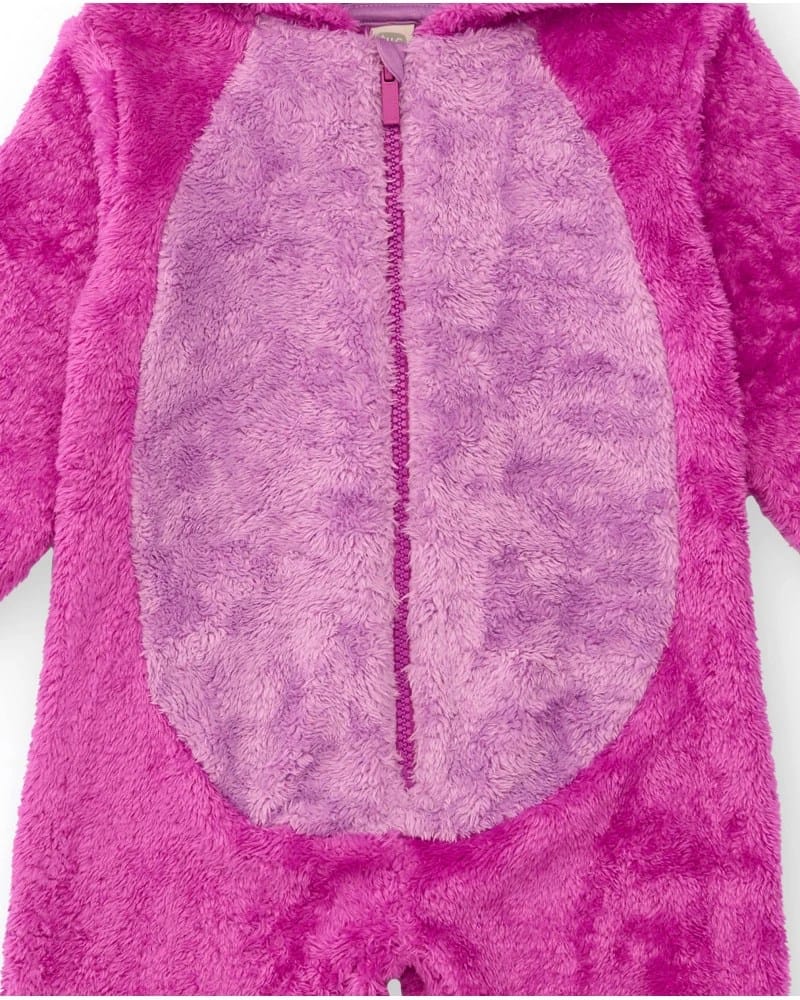 Tüdrukute pikk kapuutsiga pidžaama väga pehmest kunstkarusnahast. Rõivas on fuksiaroosa, ees on keskel ovaalne tükk heledamas fuksia- või lavendlivärvis, mis imiteerib kõhtu. Kapuutsil on tikitud koletise detail suurte silmade ja väikese suuga. Eristavaks tunnuseks on see, et silmavalged on tikitud pimedas helendava niidiga. Pidžaamal on ees lukk, mis hõlbustab selgapanekut. Kätistel ja pahkluudel on kontrastses värvitoonis elastne ääris, et tagada mugav istuvus ja soojus.