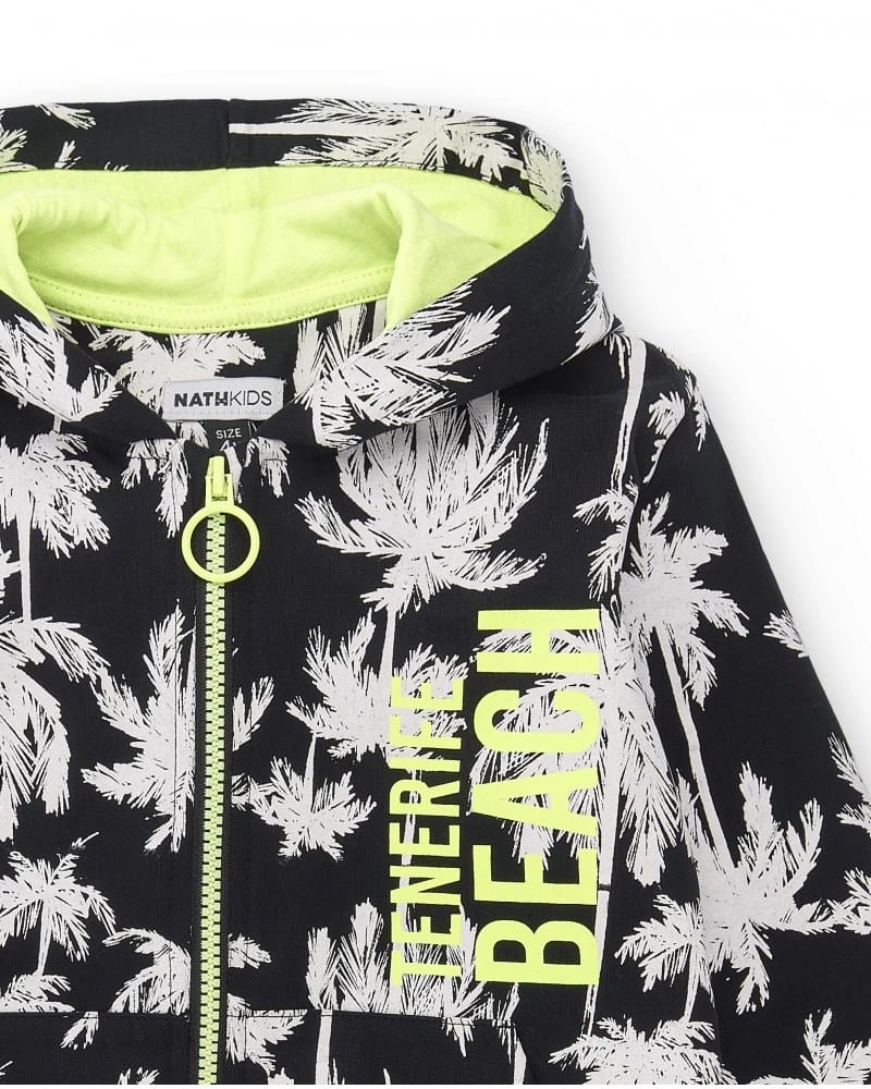 Kapuutsiga poiste must-valge dressipluus. Täispikk lukk. Kahe tasku ja kapuutsiga mugav dressipluus. Hästi sobib igapäeva kasumiseks.
