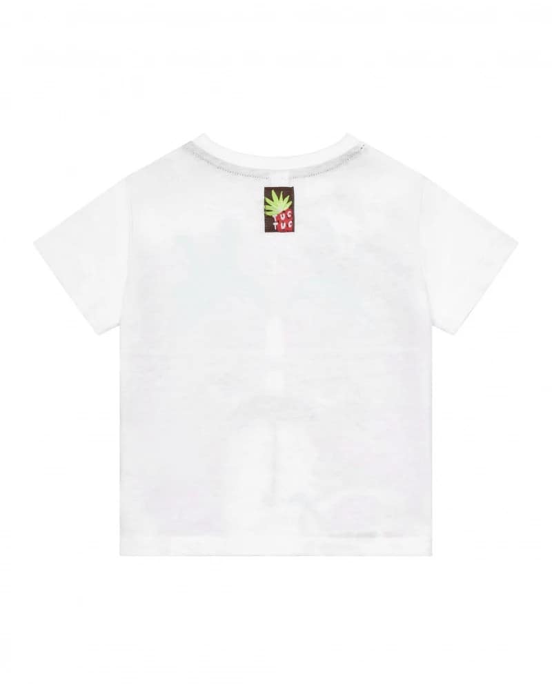 Komplekt poistele, mis koosneb valgest tiigrikirja ja lõbusa sõnumiga särgist ning pruunidest elastse vöökoha ja reguleeritava pingutusnööriga lühikestest pükstest. Valge lühikeste varrukatega kootud T-särk poistele, millel on prillidega tiigri kujundus ja kiri “Ma olen vaikne!”.
