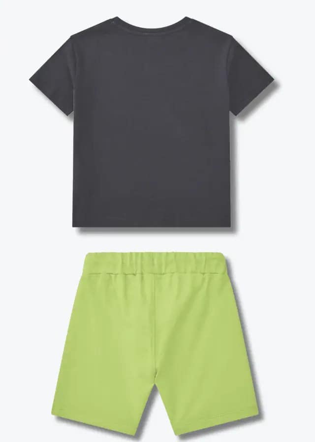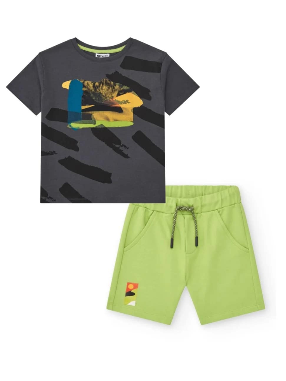 Poiste komplekt, mis koosneb kootud looduse mustriga T-särgist ning reguleeritava vöökohaga bermuda pükstest. Pehmest trikotaažkangast valmistatud mugavad lühikesed püksid, millel on kaks küljetaskut ning elastne kummivärvel. Ilusti sobib igapäevaseks kandmiseks. Suvine komplekt nii suurtele kui väikestele poistele sobib kanda nii lasteaias, koolis kui ka vabal ajal.