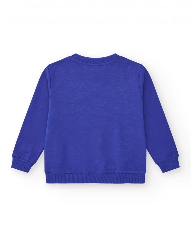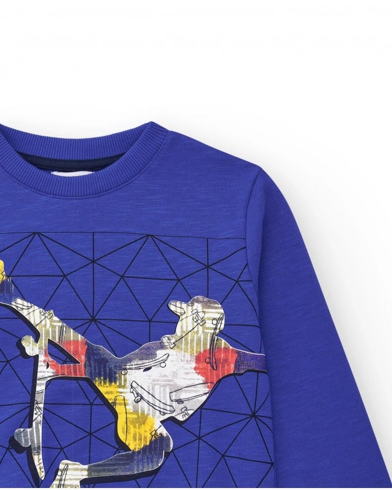 Poiste sinine pehmest kangast dressipluus rulaprindi ja geomeetriliste detailidega. Ümara kaeluse ja mugavuse tagamiseks soonikkoes kätiste osad. Ilusti sobib igapäevaseks kandmiseks.