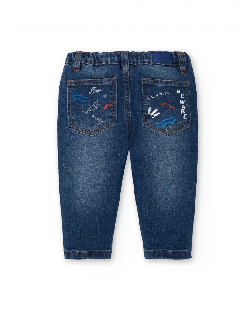 Poiste teksapüksid. Puuvillast valmistatud mugavad püksid, millel on kaks küljetaskut ning elastne kummivärvel. Relax Fit (ülevalt kottis ja laiad, alt kitsenevad) lõikega, sinised (denim blue stone) teksapüksid poistele. Teksapüksid poistele sobib kanda nii lasteaias, koolis kui ka vabal ajal. Hästi sobib igapäevaseks kandmiseks.