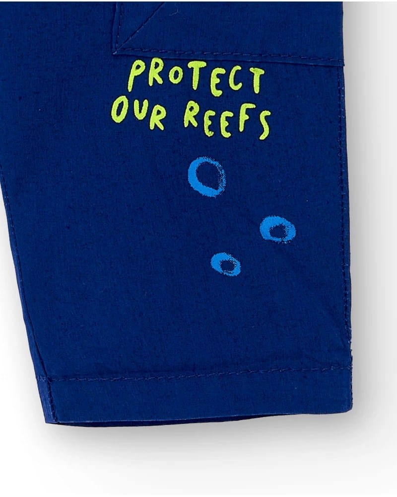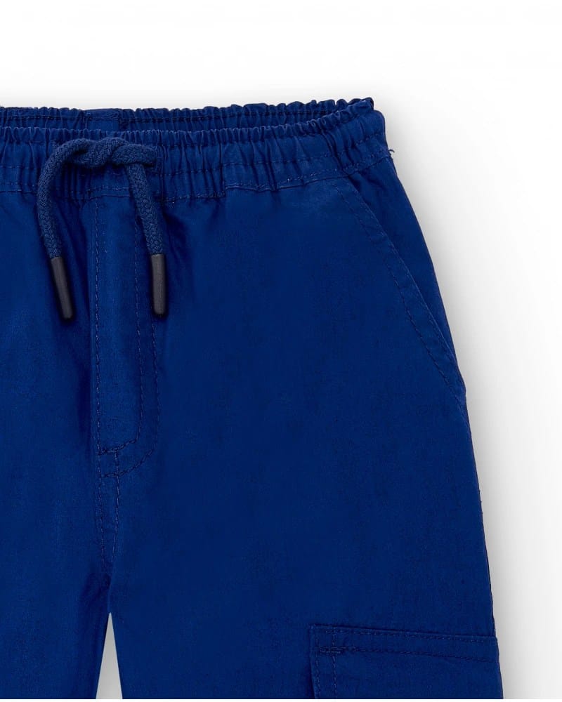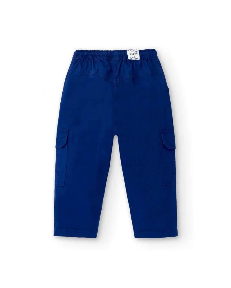 Poiste tumesinine cargopüksid. Puuvillast valmistatud mugavad püksid, millel on kaks küljetaskut ning elastne kummivärvel. Sääreotstes lai elastikpael. Cargopüksid poistele sobib kanda nii lasteaias, koolis kui ka vabal ajal. Hästi sobib igapäevaseks kandmiseks.