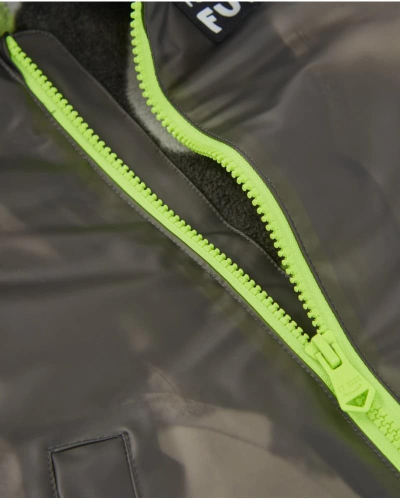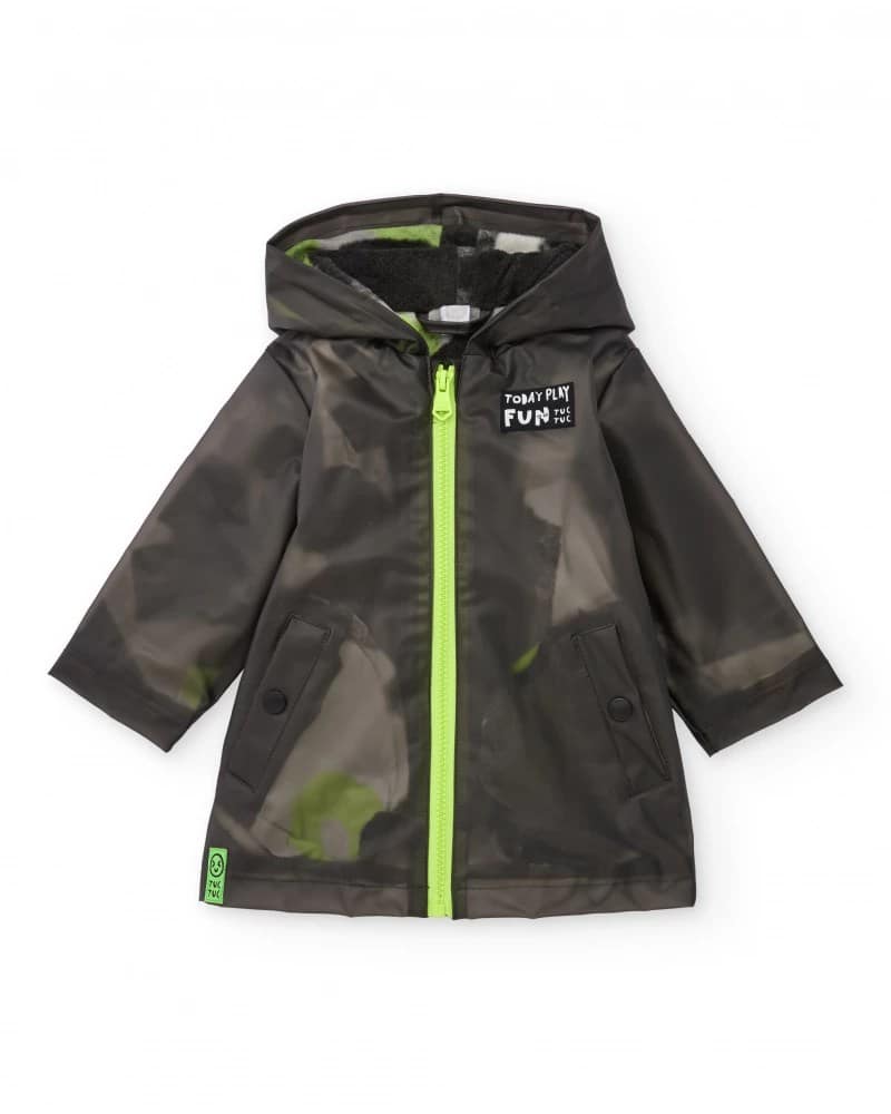 Poiste vihmamantel poolläbipaistvas mustas värvitoonis neoonroheliste detailidega. Mantlil on eesmine tõmblukk, integreeritud kapuuts ning küljetaskud klapi ja trukiga. Sisemus on vooderdatud pehme fliisiga lisasoojuse ja mugavuse tagamiseks. Moodne ja funktsionaalne disain, mis sobib ideaalselt poiste kaitsmiseks vihmastel päevadel.