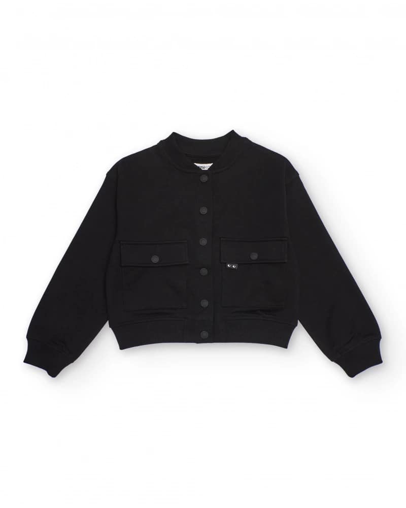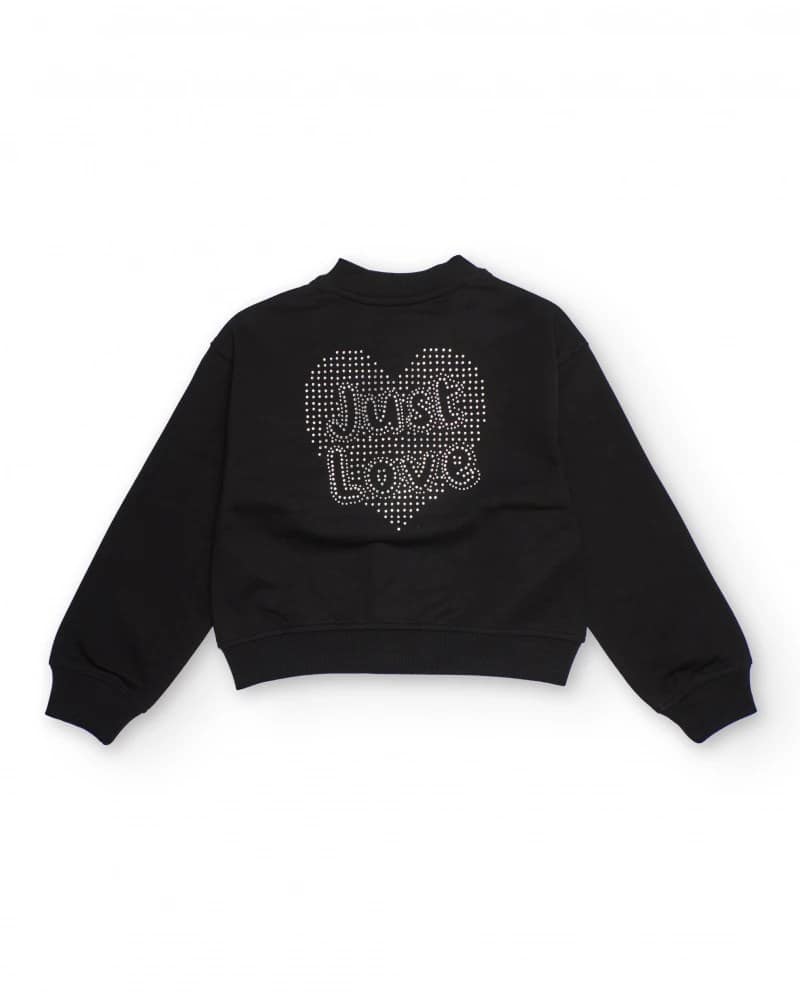 Tüdrukute must jakk trukkkinnitusega ja ümara kaelusega. Kaks klapiga rinnataskut ja soonikkoes elastsed kätised. Selga kaunistab sädelev südamekujuline trukk ja kiri “Just Love”. Ideaalne igale riietusele moodsa ja mugava ilme lisamiseks.