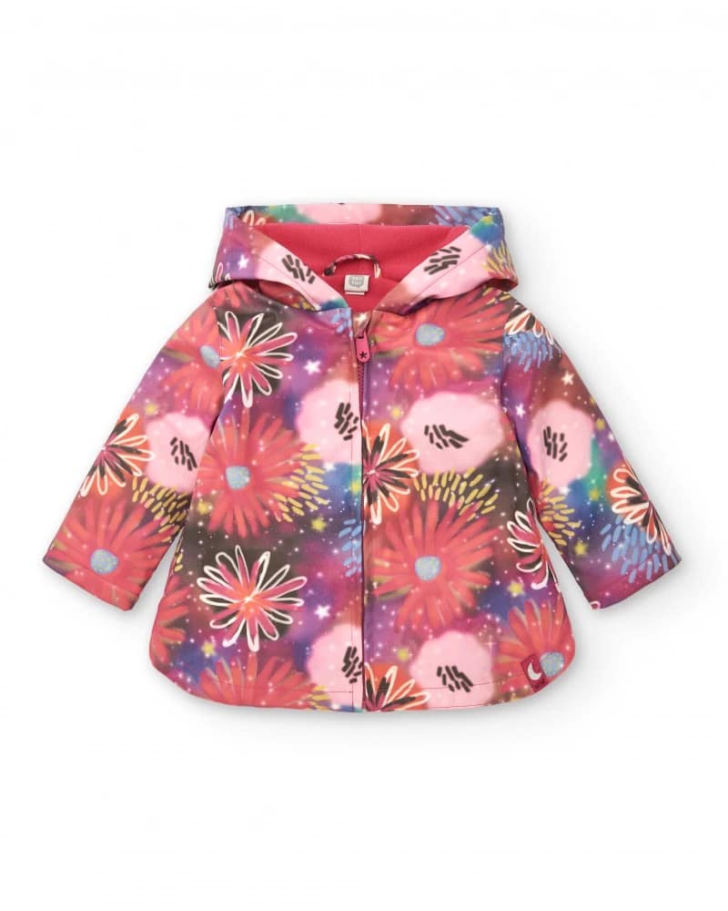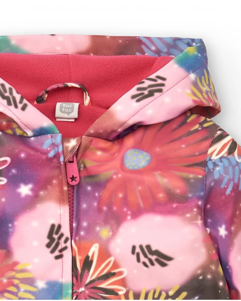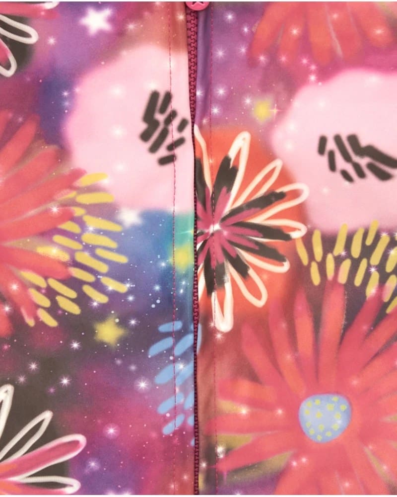 Erksa ja ereda lilleprintiga roosa vihmajope tüdrukutele, mis sobib ideaalselt vihmaseks päevaks. Kapuutsi ja tõmblukuga rõivas tagab kaitse ilmastiku eest, säilitades samas stiili. Selle rõõmsameelne ja värviline disain lisab igale riietusele lõbusust, kaitstes samas vee ja tuule eest.