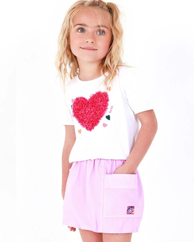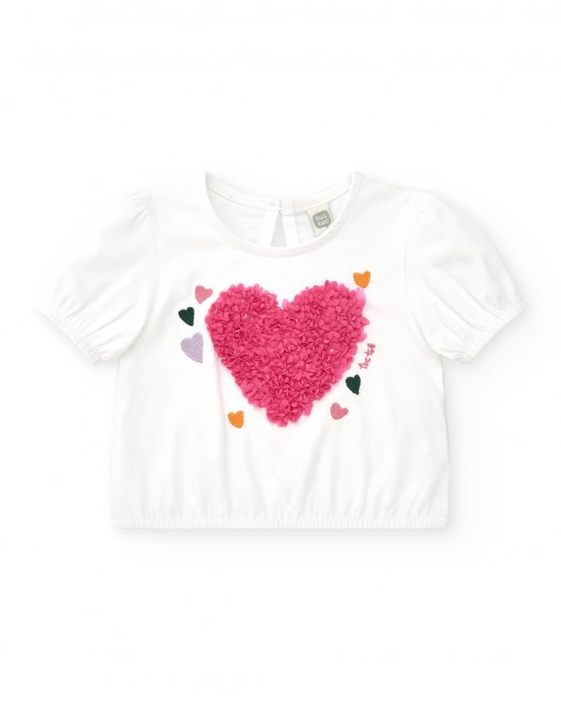 Tüdrukutele armas tikitud südamega topp suve pluus puhvis lühikeste varrukatega ja kroogitud detailiga allääres. Seljal nööpkinnis ja pisarakujulise äärega ava. Ideaalne valik erilisteks hetkedeks!