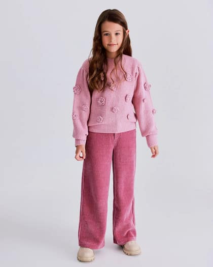 Tüdrukute laia soonikkoes roosad sametpüksid