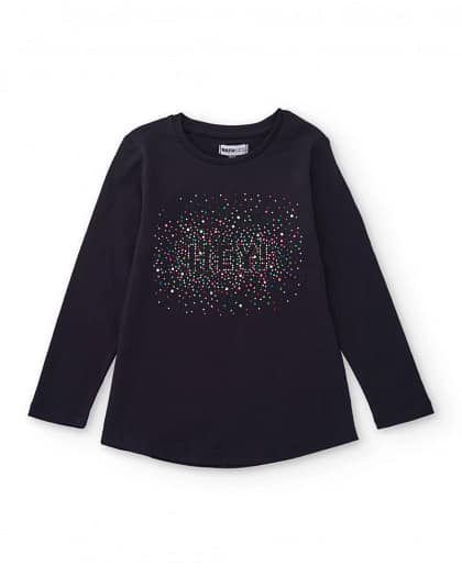Tüdrukute pikkade varrukatega tumesinine T-särk